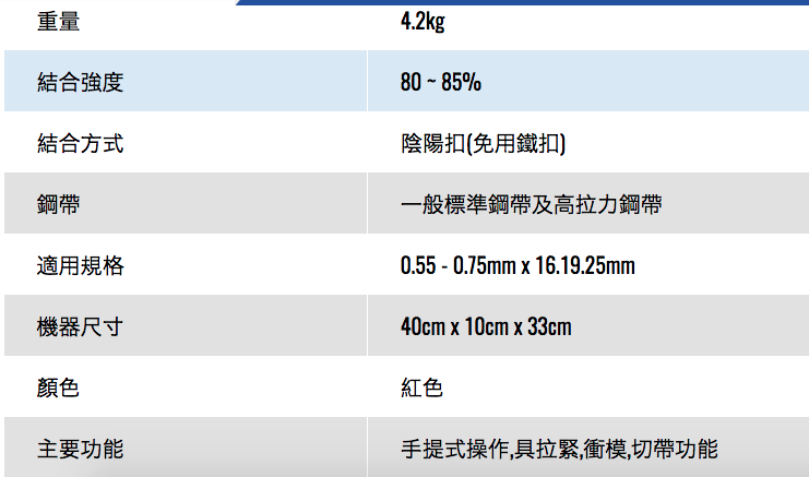 钢带免扣包装工具适用于平面包装,例如栈板、箱体和其他各式类似的包装形式,普通规格和高拉力规格的钢带均可使用,由于是免扣连接,不需要另外使用钢扣,应用于几乎所有领域的通用型钢带打包工具,使用可靠,设计坚固,易于操作并且较为轻便。