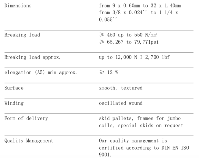 塑钢包装带又称塑钢带,是以聚对苯二甲酸乙二醇酯为主要原料经加工而成的,它是目前世界上用于代替钢带的一种新型环保的包装材料,是一种取代钢带的新型高强度打包带,是目前世界上使用最广泛的替钢带使用。